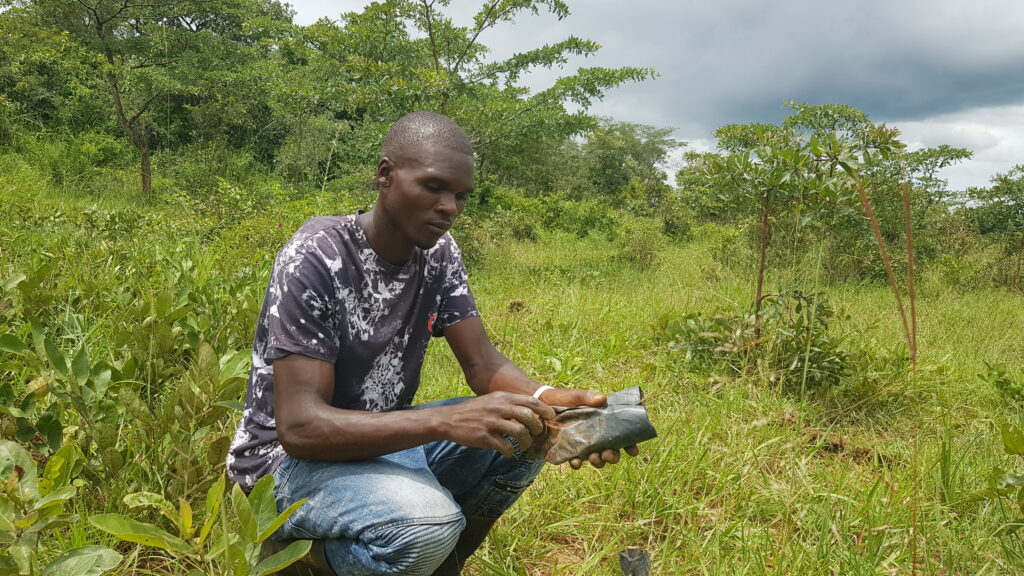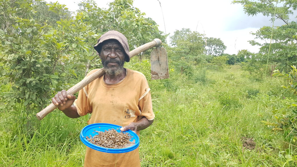 The problem was the transition from nursery to degraded soil. When you transplant a seedling, its tap root has already been disturbed. In depleted, dry soil it struggles to re-establish, and some just don’t make it. But when a Musangu seed germinates where it is planted, the tap root goes down first — deep into the soil searching for moisture — before anything even shows above the ground. By the time the shoot appears, the tree already has a foothold. That is a very different situation from a transplanted seedling trying to recover from being moved.