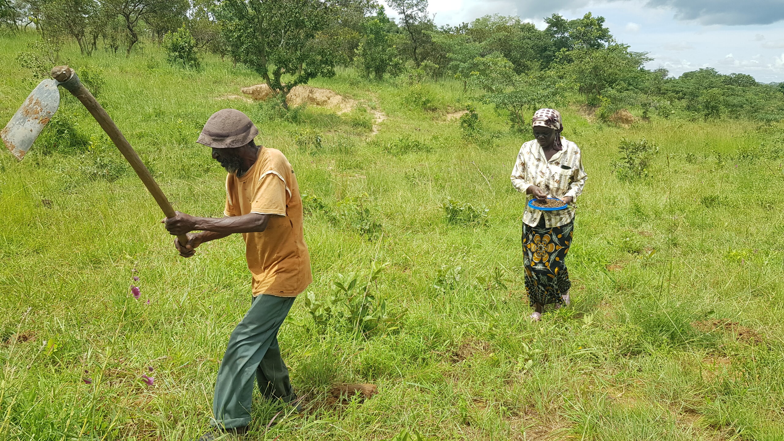 The Chisengo site is degraded land that was farmed and then abandoned. The soil is depleted and in places bare. Running through the middle of the site is a low-lying valley where water collects during the rains and channels across the land with enough force to strip away topsoil. Soil erosion here is serious, and it gets worse every rainy season.